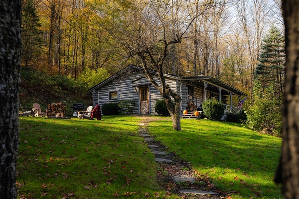 Follow the stone path to your secluded log cabin surrounded by nature and fresh mountain air.